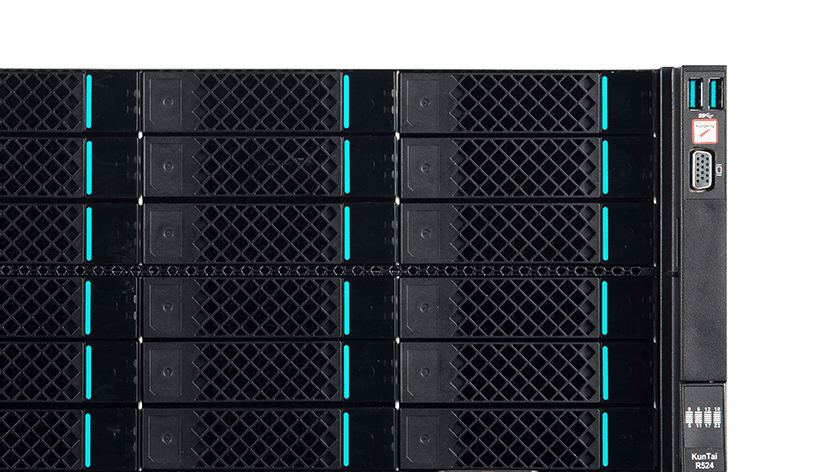 KunTai R524 存储型服务器是C币钱包数码基于鲲鹏处理器推出的新一代 ARM数据中心服务器。。。主要面向存储业务,,,,具有海量存储、、高性能、、、、低功耗以及易扩展的特点,,,适合为大数据分析、、、软件定义存 储等应用场景的工作负载进行髙效加速。。。